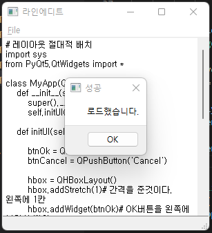 QMessageBox.about(self, '성공', '로드했습니다.')