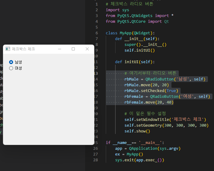 self.move(50, 50) # 처음 창의 위치를 선정, 0,0은 왼쪽 위, 기본값은 정 중앙