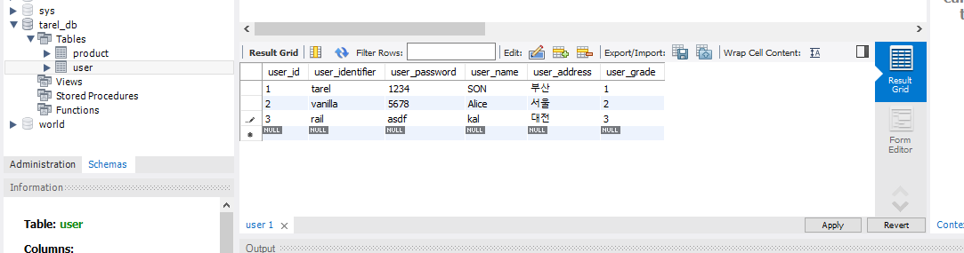 우선 회원테이블을 만들어보자