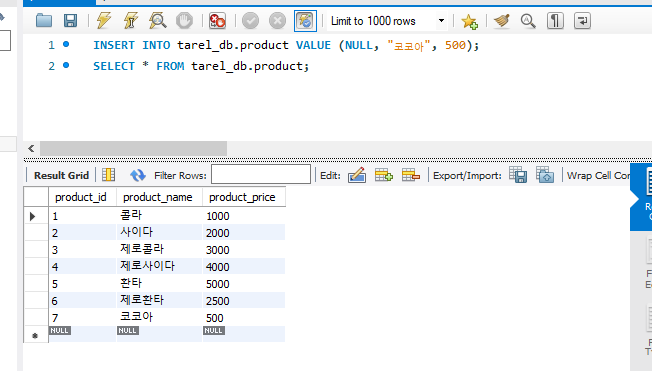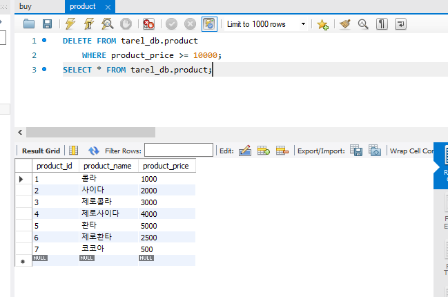 위 방법을 반복하여, product 테이블도 만들어보자